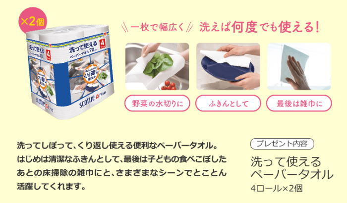 お役立ち特典付き!「洗って使えるペーパータオル(4ロールx2)」プレゼント