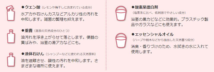 クエン酸や重曹を使用。