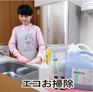 メリーメイドは、合成洗剤の代わりに食品などにも使われる身近な材料を使ってお掃除する『エコお掃除』を行っています。